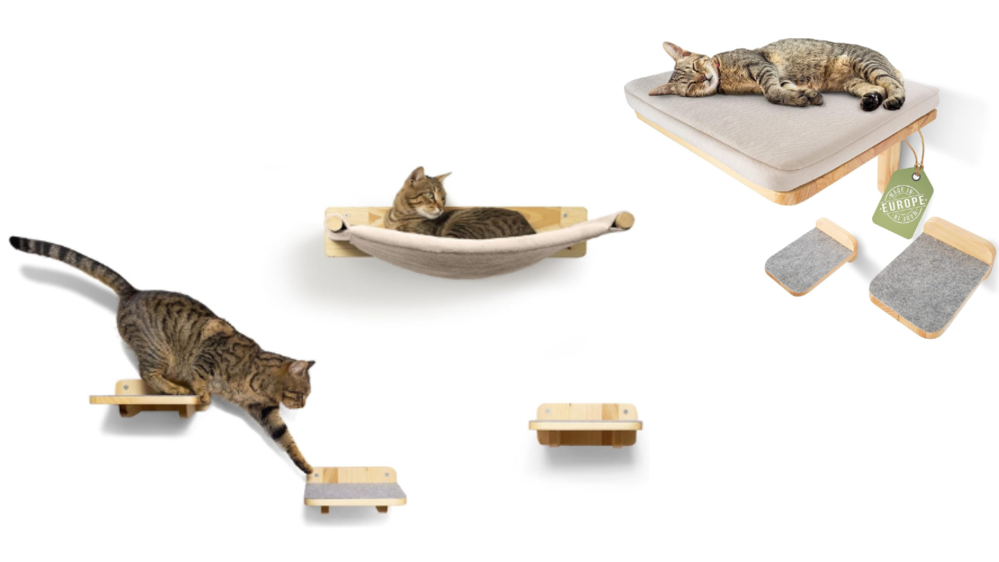 WOOWOOD® Kletterwand-Katzenhängematte Set inkl. 3x Katzentreppen
