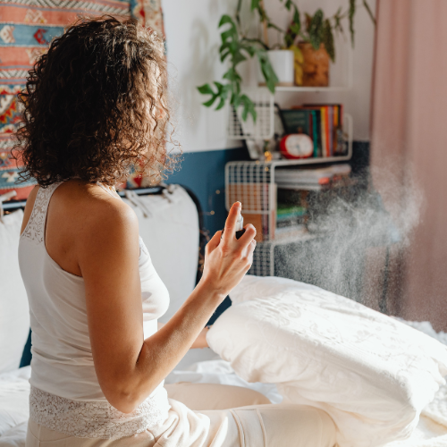Praktische Sprühflasche verteilt den Duft und sorgt für Wohlbefinden.
