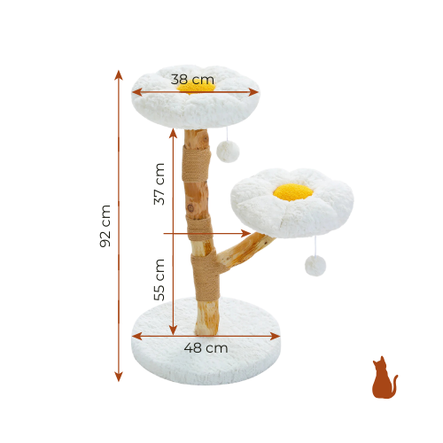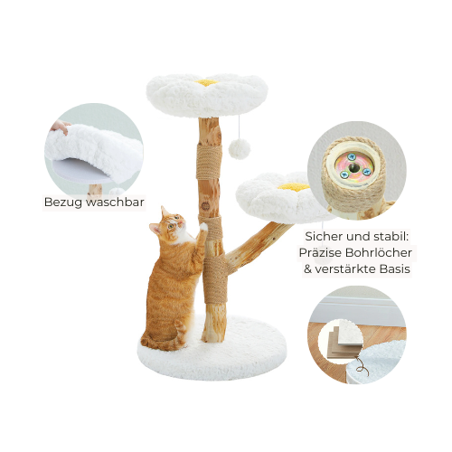 Ein echter Blickfang für dein Zuhause und ein Paradies für deine Katze: Dieser moderne Kratzbaum in Blumenform kombiniert hochwertige Materialien, cleveres Design und maximalen Komfort für Katzen bis zu 7,5 kg. Die zwei blütenförmigen Liegeflächen, das massive Holzgestell und robustes Sisal machen ihn zu einem langlebigen Wohlfühlort – perfekt zum Klettern, Kratzen, Spielen & Entspannen.