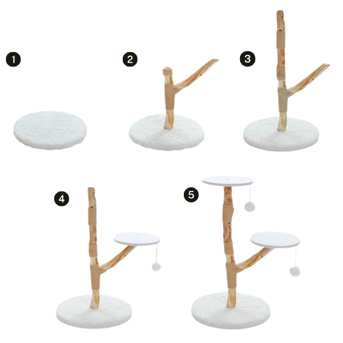 Der Kratzbaum lässt sich in 5 einfachen Schritte zusammenbauen.