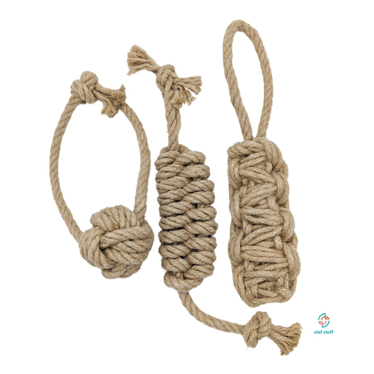 Natürlich zerren, spielen & kauen: Das Zerrspielzeug aus 100 % Hanfseil ist die perfekte Kombination aus Spaß, Zahnpflege und Umweltbewusstsein. Gefertigt in Norddeutschland aus schadstofffreiem Hanf – ganz ohne Polyester –, bietet es robusten Spielspaß für kleine und große Hunde. Erhältlich als Affenfaust, Makrabrett & Webknoten. Und wenn’s mal ausgedient hat? Einfach kompostieren.