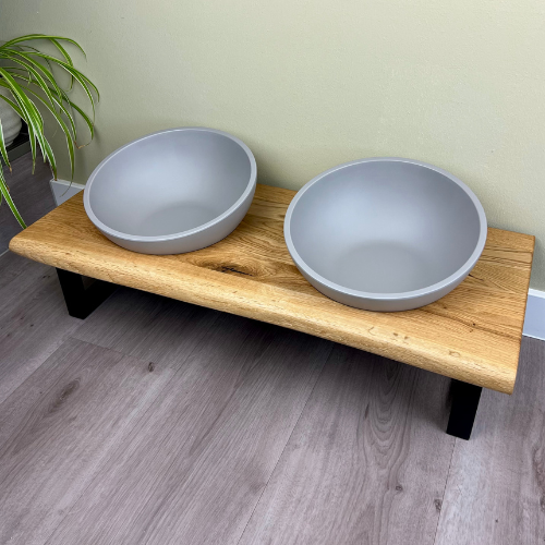 Diese handgefertigte Futterstation vereint ästhetisches Design, hochwertige Materialien und praktischen Nutzen. Die massive, FSC-zertifizierte Eiche mit charaktervoller Baumkante und extrabreiter XL-Holzbohle macht jede Station zu einem einzigartigen Unikat, das Wärme und Natürlichkeit in dein Zuhause bringt.