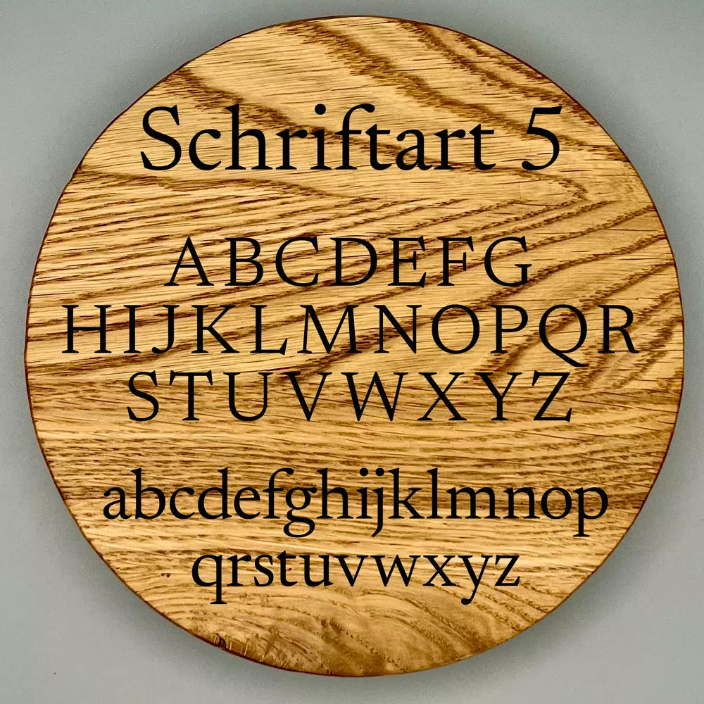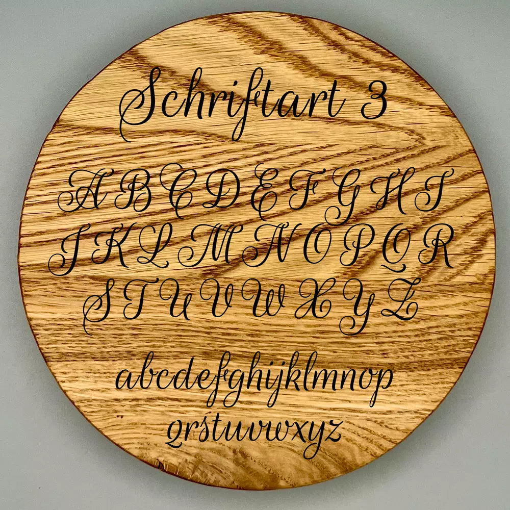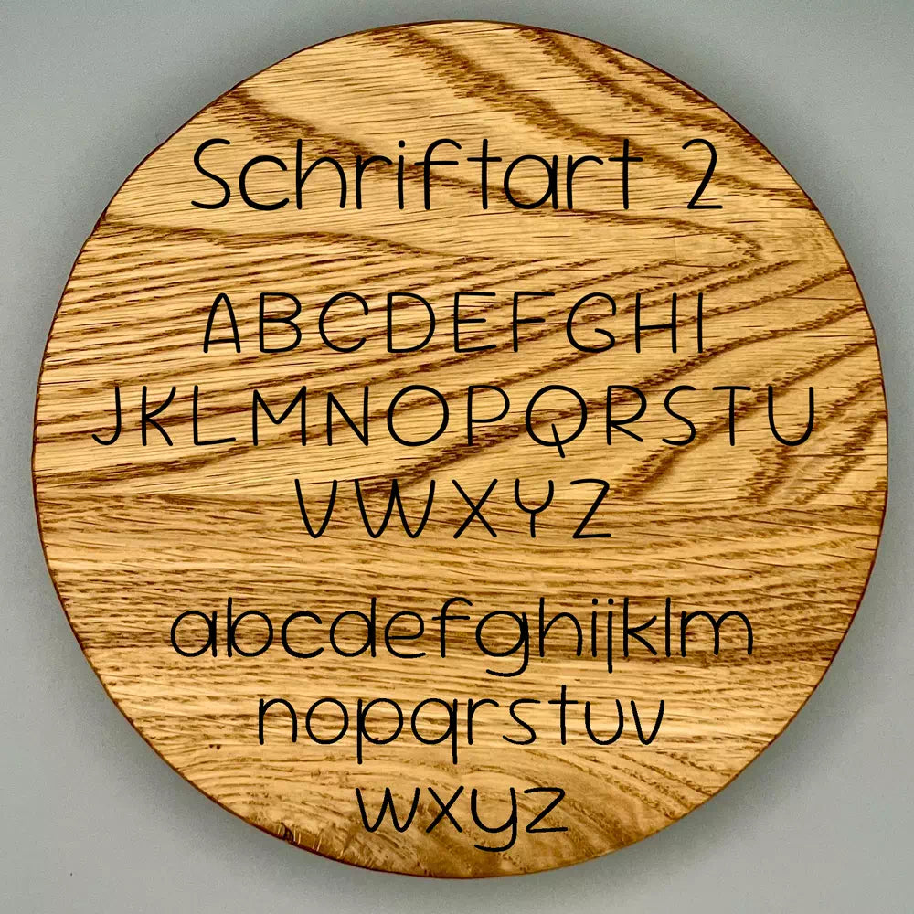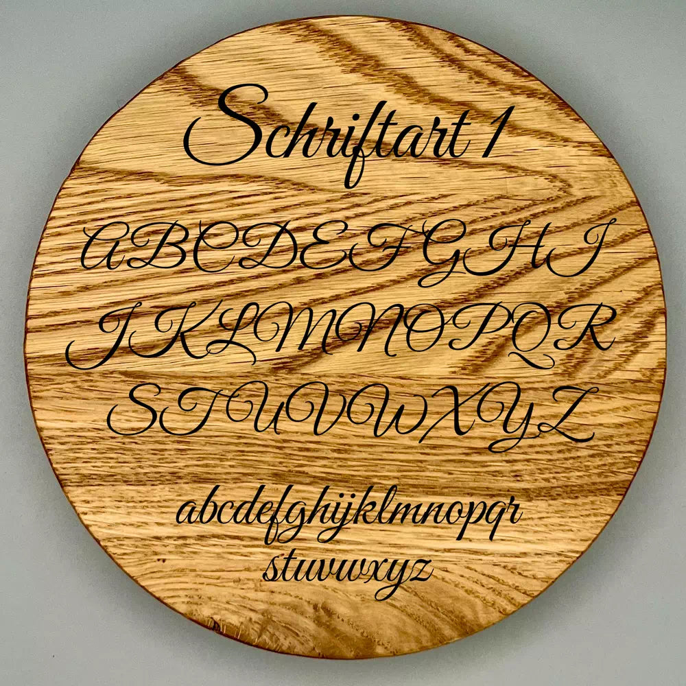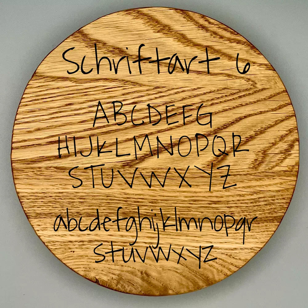Die Gravur erfolgt per moderner Lasergravur, wodurch sie dauerhaft haltbar bleibt und mit feinen Konturen überzeugt. Standardmäßig platzieren wir den Schriftzug vorne mittig zwischen den Näpfen. Die Größe variiert je nach Textlänge und Schriftart, beträgt aber in der Regel ca. 70–80 mm in der Länge und 20–30 mm in der Höhe. Für deinen Schriftzug stehen dir 6 verschiedene Schriftarten zur Auswahl.