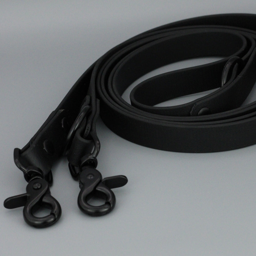 Das besondere Highlight: pulverbeschichtete, schwarz-matte Metallbeschläge, die der Leine ihren exklusiven Look verleihen. Dank Biothane erhältst du die Haptik von Leder, jedoch mit vielen Vorteilen: strapazierfähig, wetterfest, wasserabweisend, geruchs- und schimmelresistent. Die Leine ist dreifach verstellbar und lässt sich flexibel anpassen. Mit einer Breite von 20 mm bietet sie optimalen Halt und angenehmen Tragekomfort.