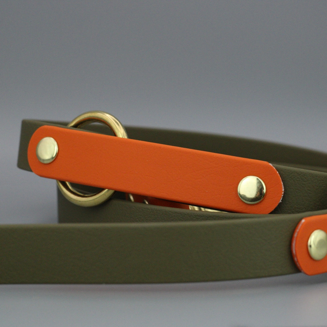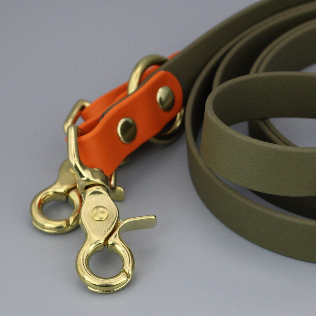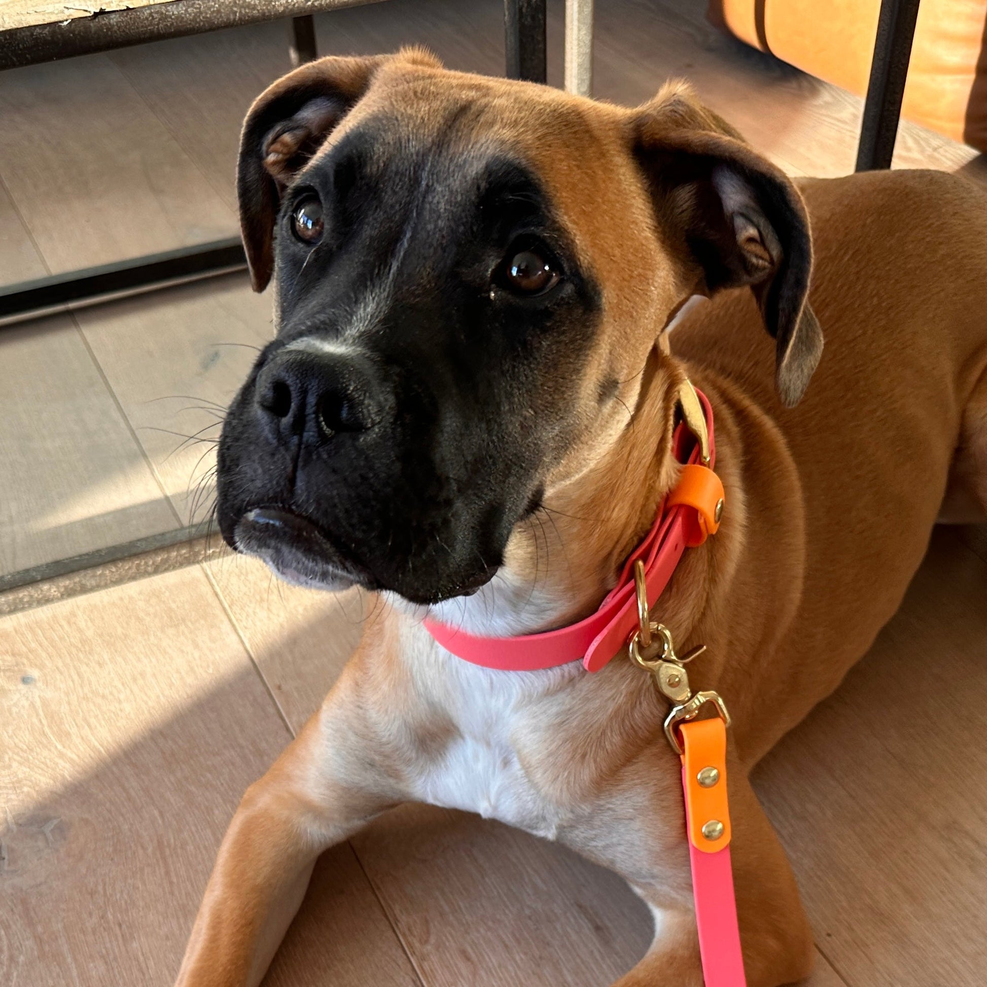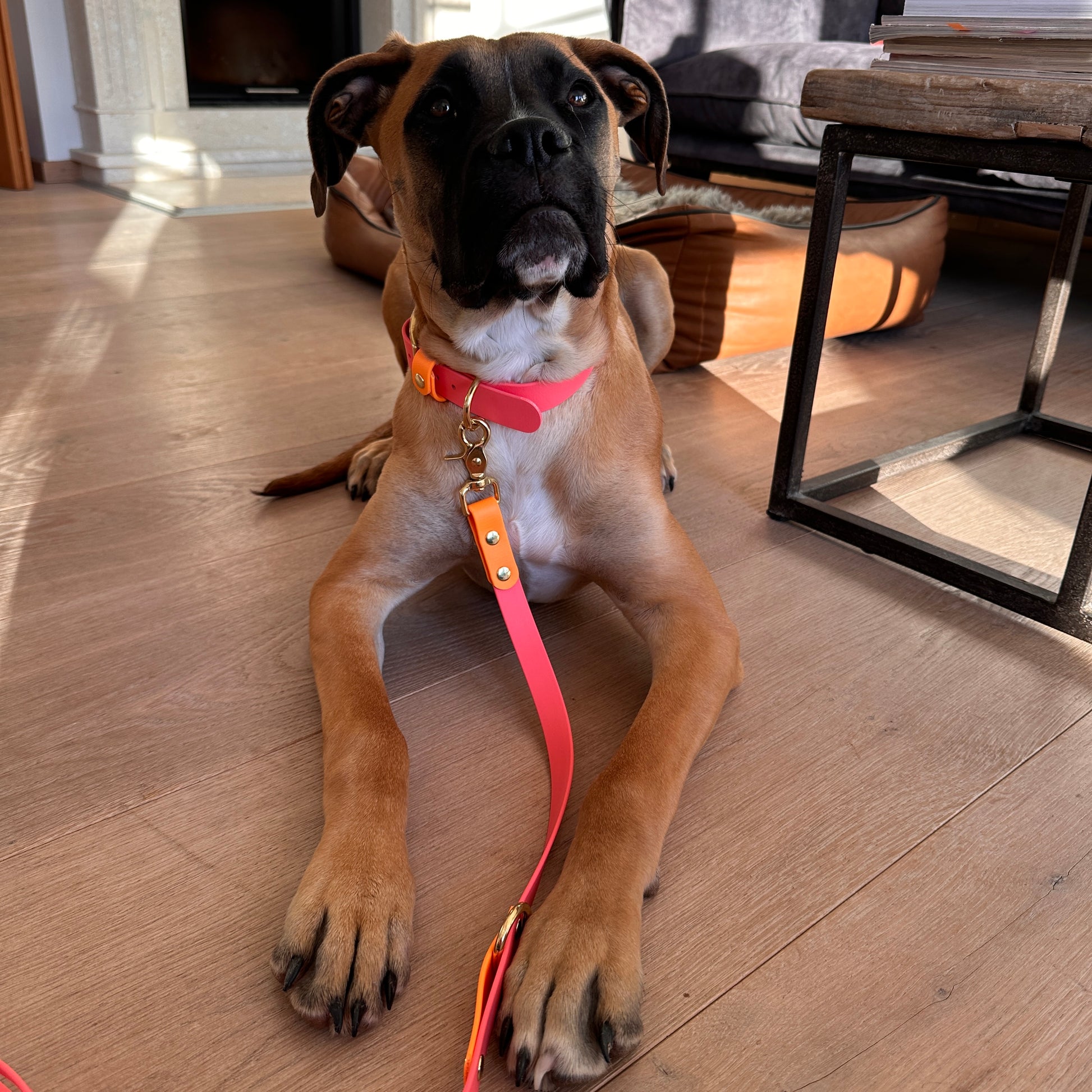 Statt gewöhnlicher Beschläge ist diese Leine mit massiven Messingbeschlägen und edlen Nieten ausgestattet. So wird deine Styledog Freihandleine nicht nur zu einem praktischen Alltagsbegleiter, sondern auch zu einem einzigartigen Accessoire, das deinem Hund einen besonders stilvollen Auftritt verleiht. Dank Biothane erhältst du die Haptik von Leder, jedoch mit vielen Vorteilen: strapazierfähig, wetterfest, wasserabweisend, geruchs- und schimmelresistent. Zudem lässt sich die Leine nach jedem Abenteuer kinderleicht mit Wasser reinigen.
