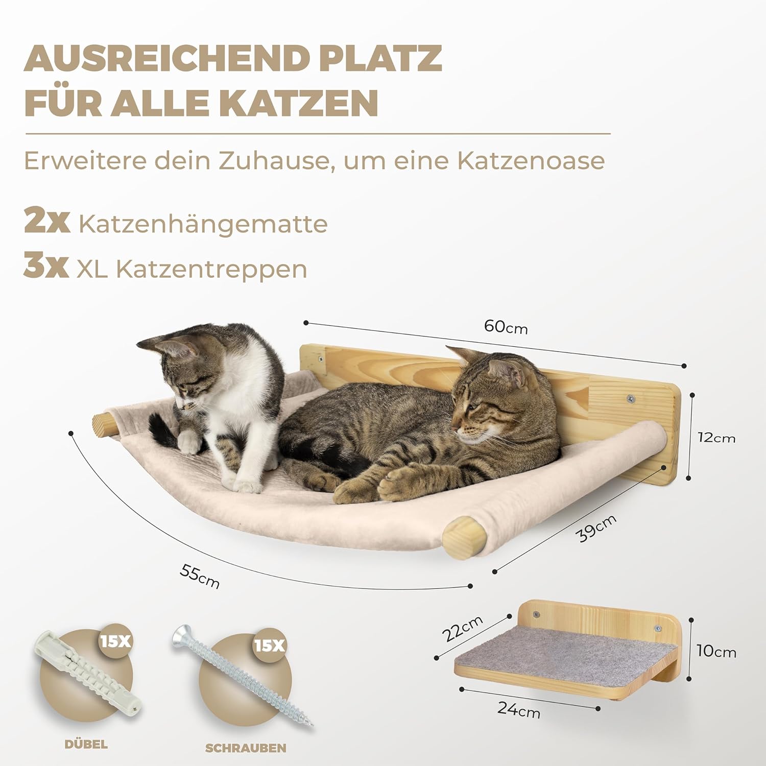 WOOWOOD® Kletterwand-Katzenhängematte Set inkl. 3x Katzentreppen