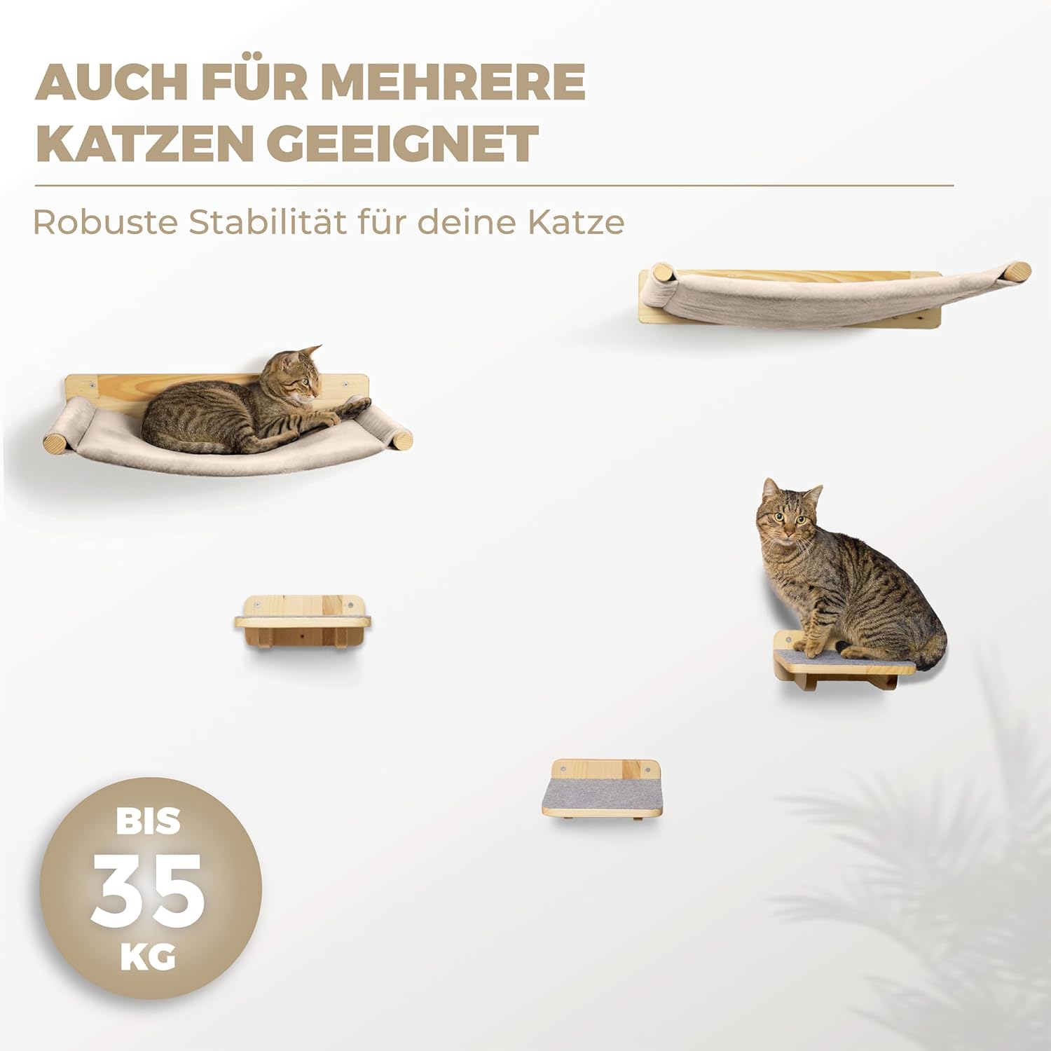 Dank der robusten Bauweise und einer sicheren Wandmontage trägt es bis zu 35 kg – ideal für große Katzen oder gleich mehrere kleine Stubentiger.
